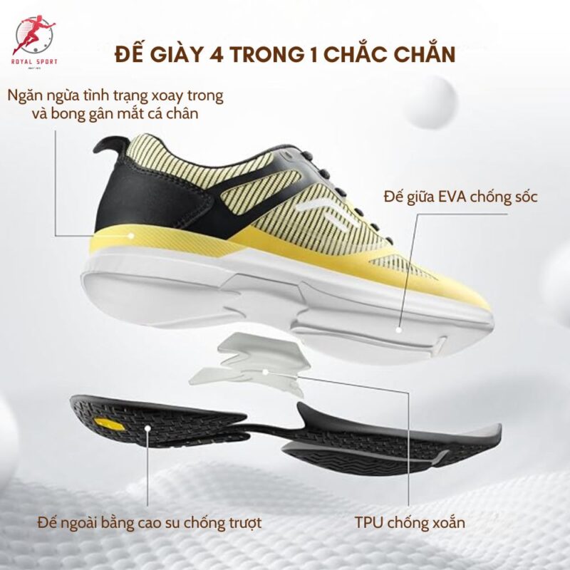 - Đế ngoài cao su tạo sự thoải mái và hỗ trợ tối ưu.